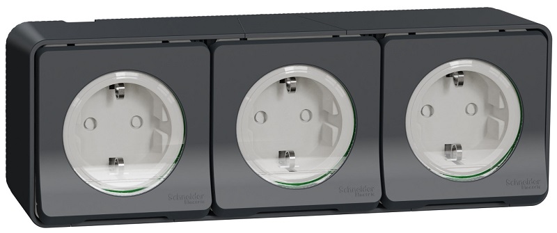 Розетка накладная с заземлением Schneider Electric Mureva Styl 3-м. крышка шторки IP55 антрацит