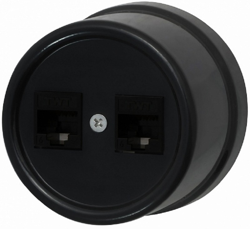 Розетка-ретро компьютерная пластик Bironi Лизетта 2-м. RJ45+RJ45 5е черный