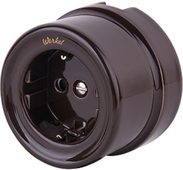Розетка-ретро с заземлением керамика Werkel Retro 1-м. коричневый