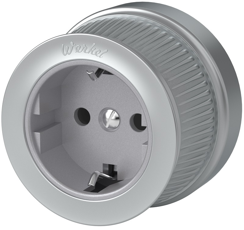 Розетка-ретро с заземлением металл Werkel Retro 1-м. шторки хром матовый