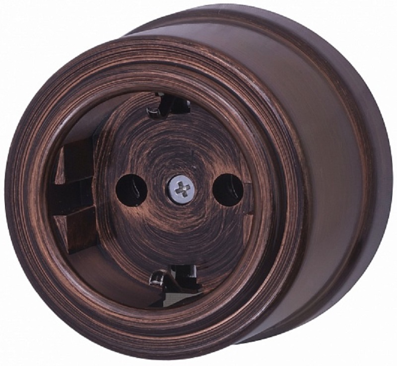 Розетка-ретро с заземлением пластик Bironi Лизетта 1-м. медный век