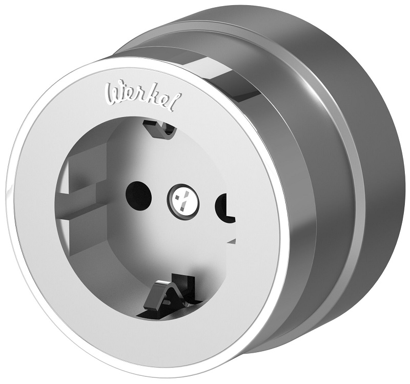 Розетка-ретро с заземлением пластик Werkel Retro Vintage 1-м. серебро матовый/хром