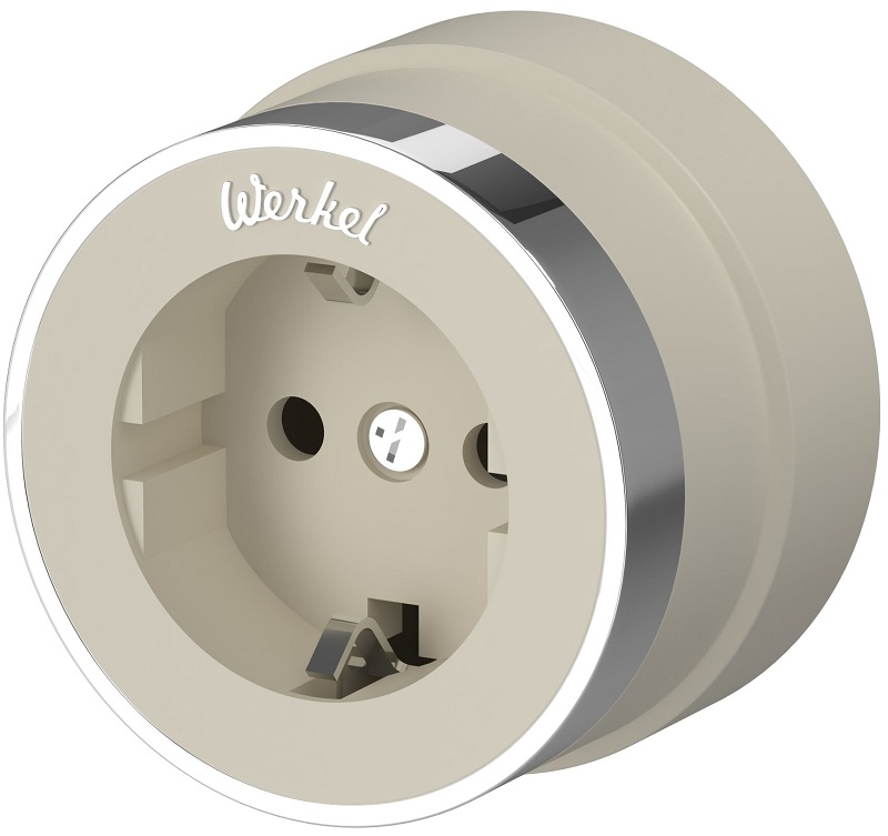 Розетка-ретро с заземлением пластик Werkel Retro Vintage 1-м. слоновая кость матовый/хром
