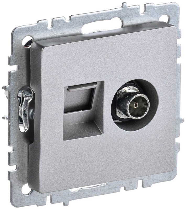 Розетка RJ45+TV Оконечная без рамки IEK Brite РТВ/РК12-БрА 2-м. алюминий