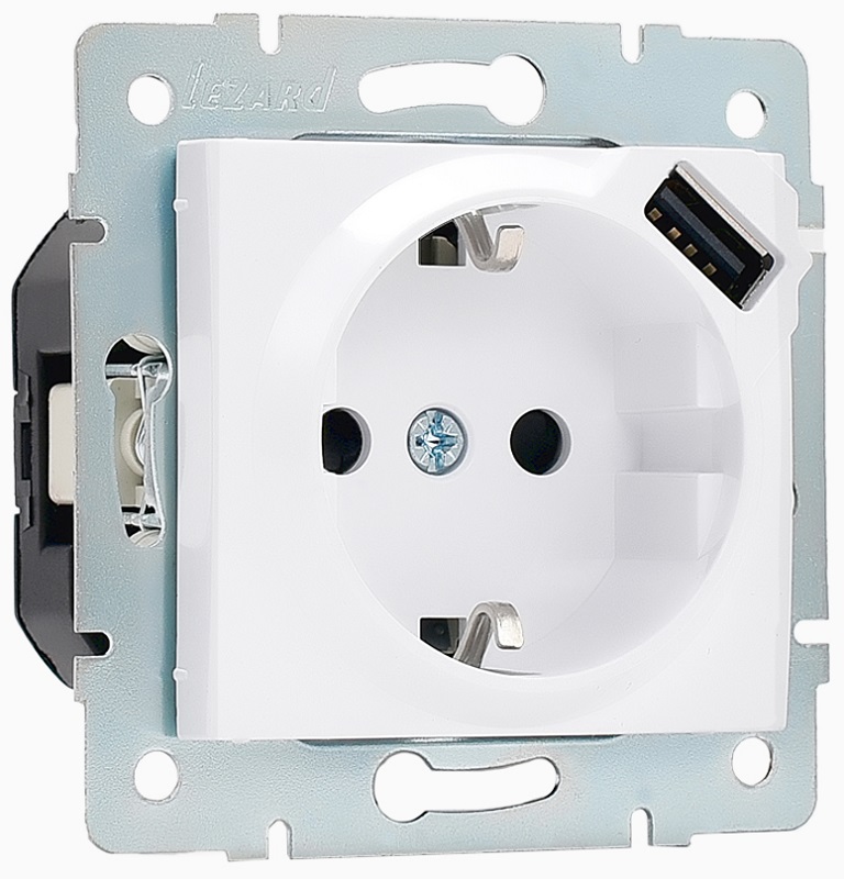 Розетка с заземлением +1хUSB без рамки Lezard Karina 1-м. белый