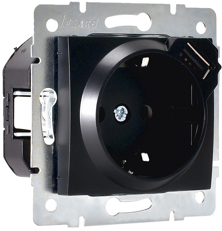 Розетка с заземлением +1хUSB без рамки Lezard Karina 1-м. черный бархат