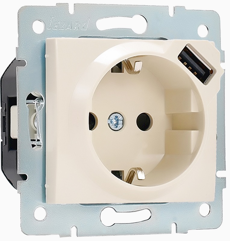 Розетка с заземлением +1хUSB без рамки Lezard Karina 1-м. кремовый
