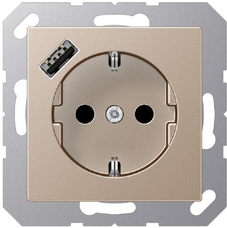 Розетка с заземлением +1хUSB тип A без рамки Jung A creation 1-м. шампань картинка