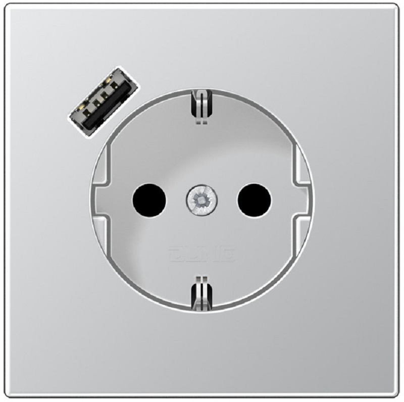Розетка с заземлением +1хUSB тип A без рамки Jung LS990 metal 1-м. алюминий картинка