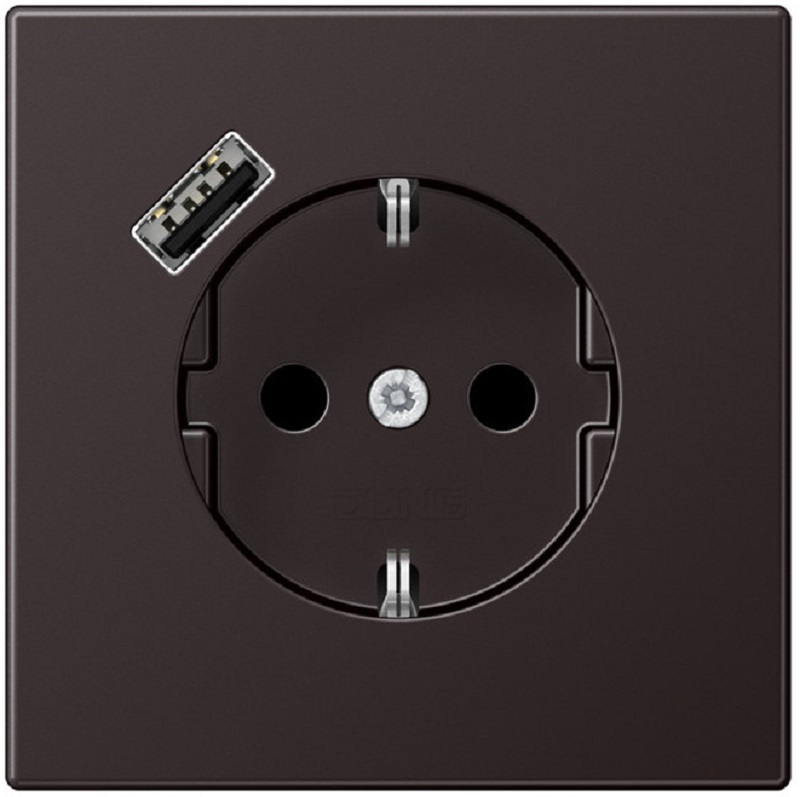 Розетка с заземлением +1хUSB тип A без рамки Jung LS990 metal 1-м. алюминий картинка
