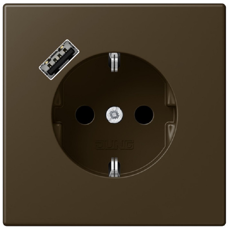Розетка с заземлением +1хUSB тип A без рамки Jung LS990 metal 1-м. античная латунь картинка