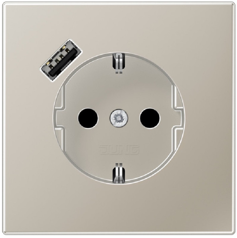 Розетка с заземлением +1хUSB тип A без рамки Jung LS990 metal 1-м. сталь картинка