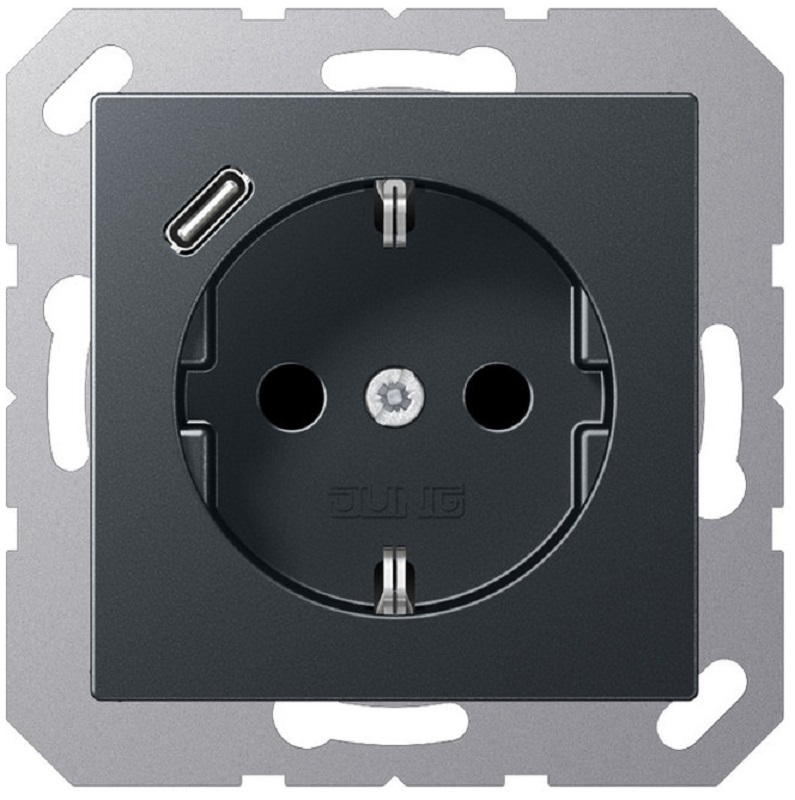 Розетка с заземлением +1хUSB тип C без рамки Jung EcoProfi 1-м. антрацит картинка