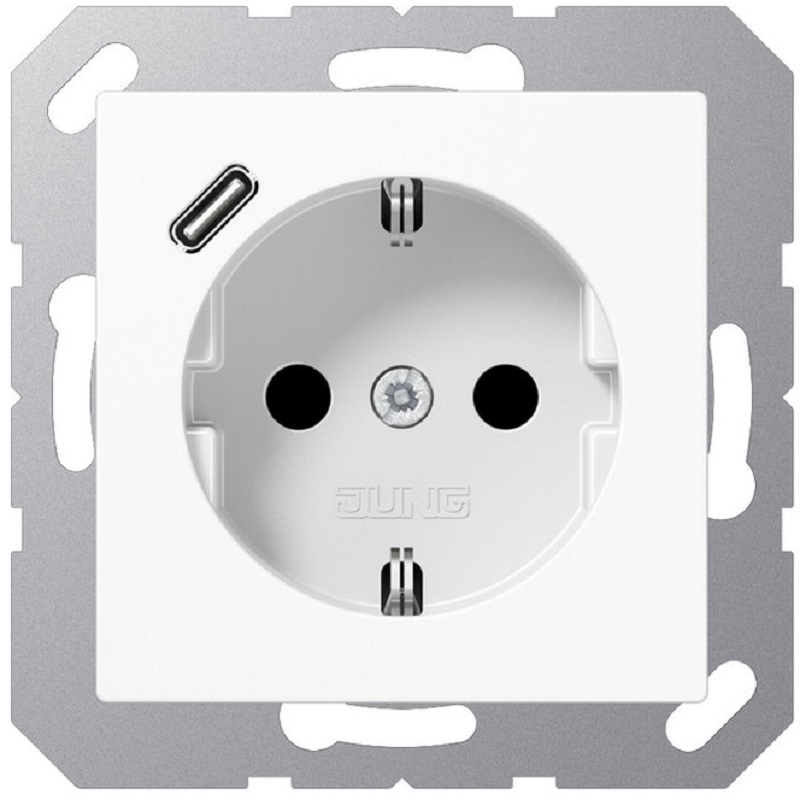 Розетка с заземлением +1хUSB тип C без рамки Jung EcoProfi 1-м. белый картинка
