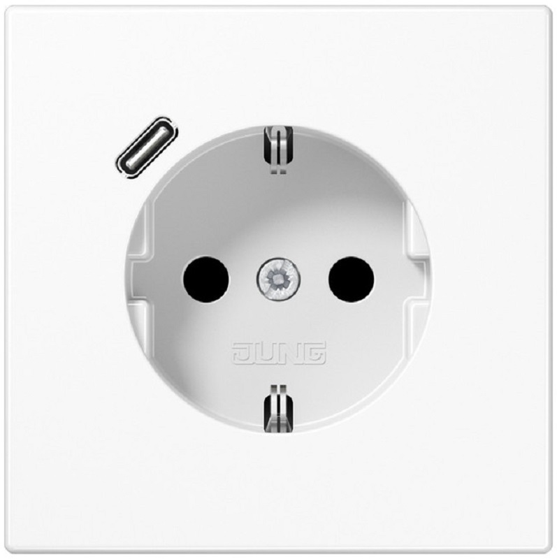 Розетка с заземлением +1хUSB тип C без рамки Jung LS990 1-м. белый картинка
