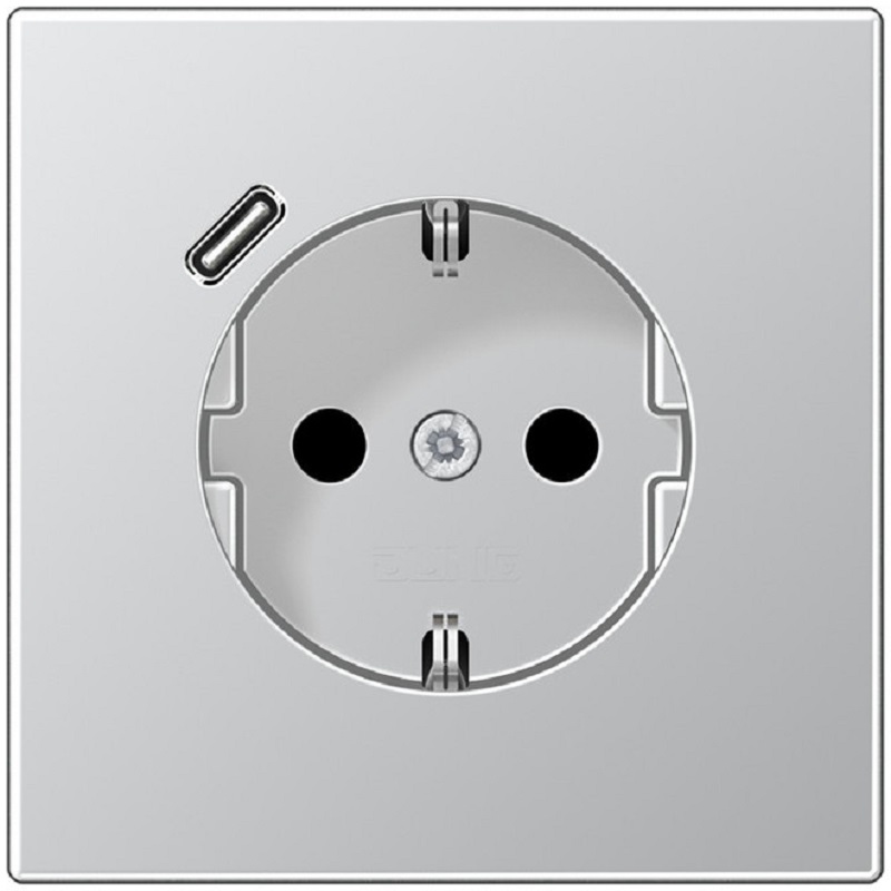 Розетка с заземлением +1хUSB тип C без рамки Jung LS990 metal 1-м. алюминий картинка