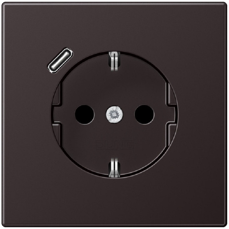 Розетка с заземлением +1хUSB тип C без рамки Jung LS990 metal 1-м. алюминий темный