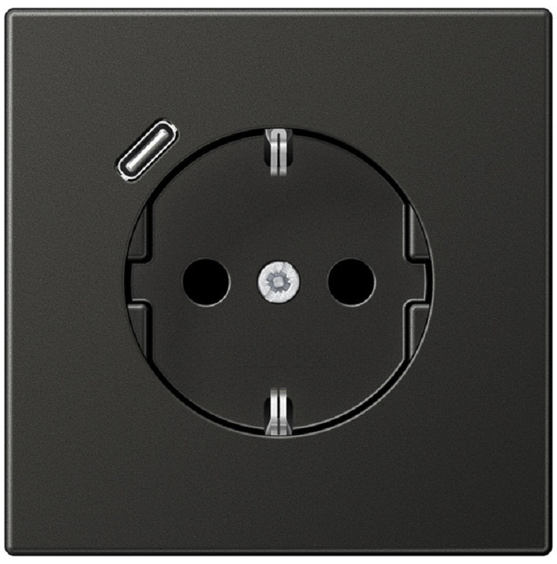 Розетка с заземлением +1хUSB тип C без рамки Jung LS990 metal 1-м. антрацит