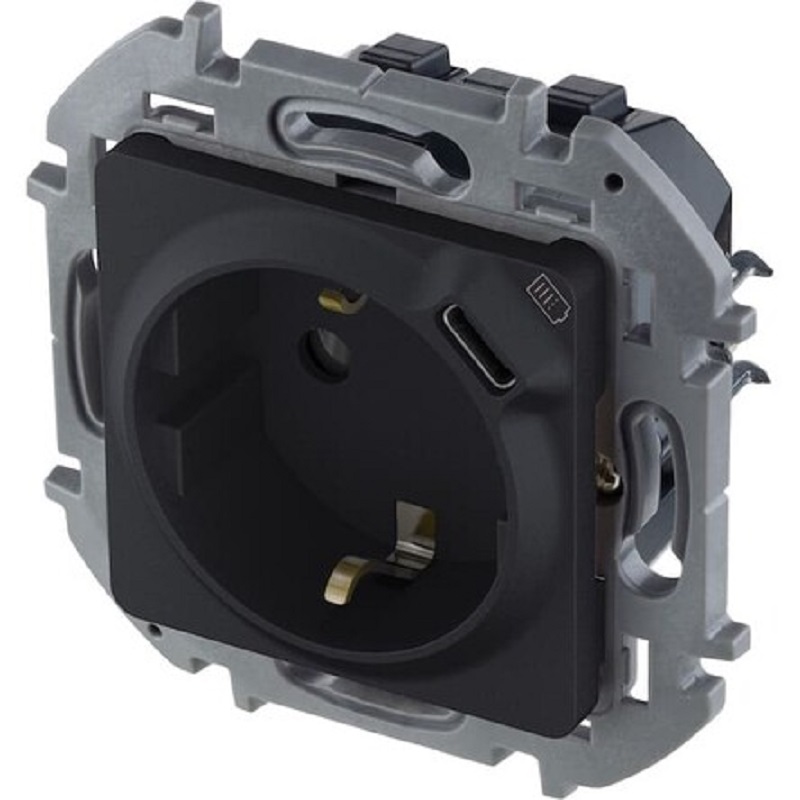 Розетка с заземлением +1хUSB тип C без рамки Legrand Inspiria 1-м. антрацит картинка