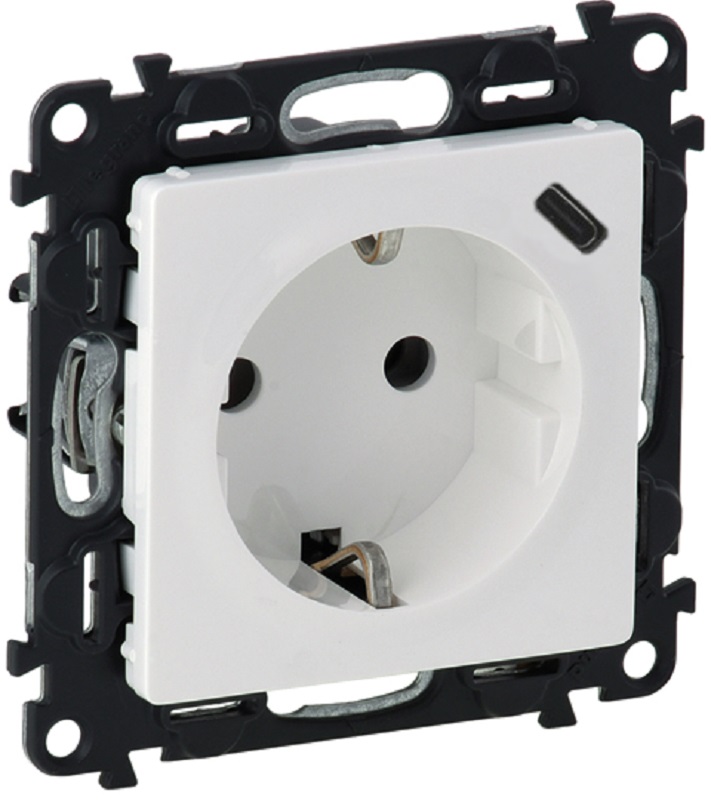 Розетка с заземлением +1xUSB тип A без рамки Legrand Valena Life 1-м. шторки белый картинка