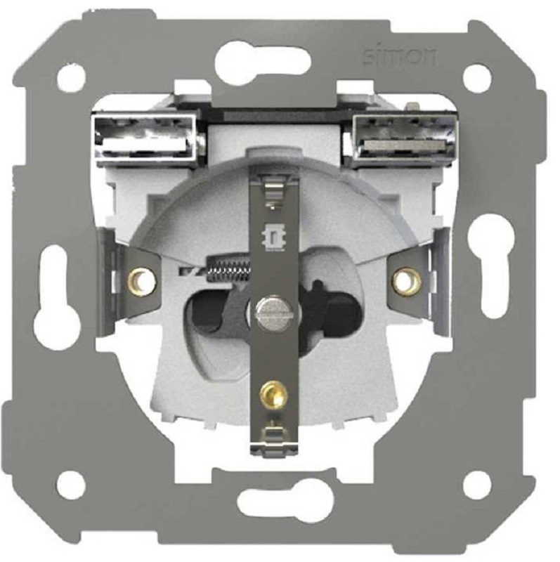 Розетка с заземлением +2хUSB тип A+A без накладки без рамки Simon75 1-м.