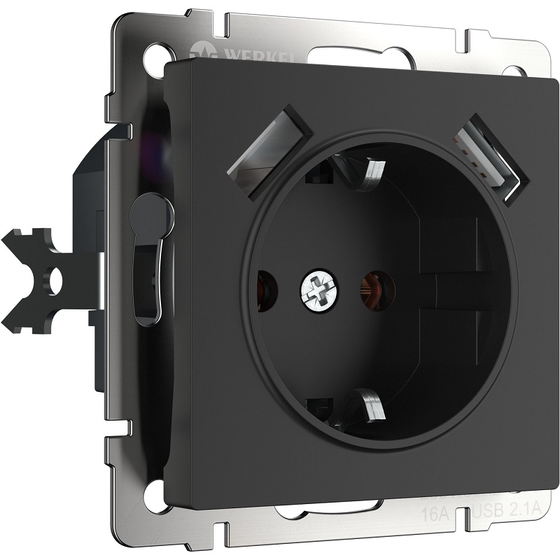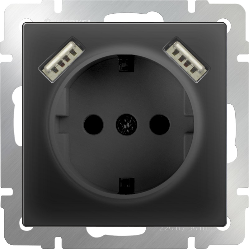 Розетка с заземлением +2хUSB тип A+A без рамки Werkel 1-м. шторки черный матовый