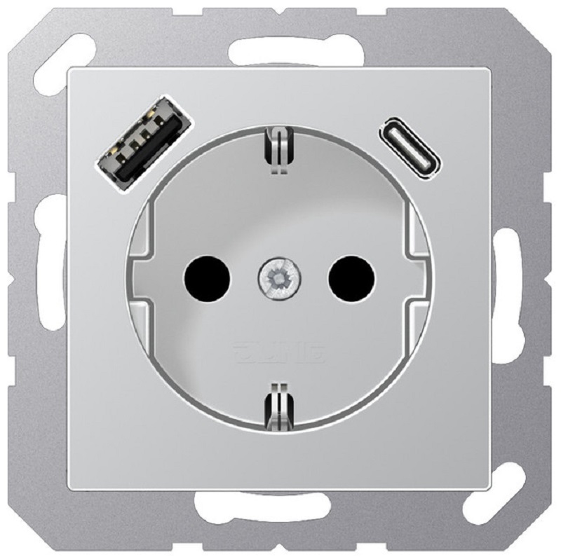 Розетка с заземлением +2хUSB тип A+C без рамки Jung EcoProfi 1-м. алюминий