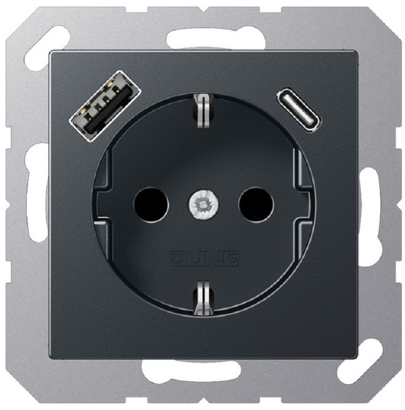 Розетка с заземлением +2хUSB тип A+C без рамки Jung EcoProfi 1-м. антрацит
