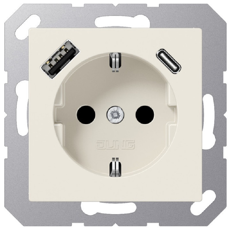 Розетка с заземлением +2хUSB тип A+C без рамки Jung EcoProfi 1-м. слоновая кость