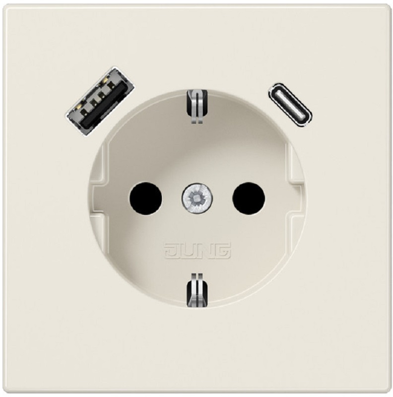 Розетка с заземлением +2хUSB тип A+C без рамки Jung LS990 1-м. бежевый картинка