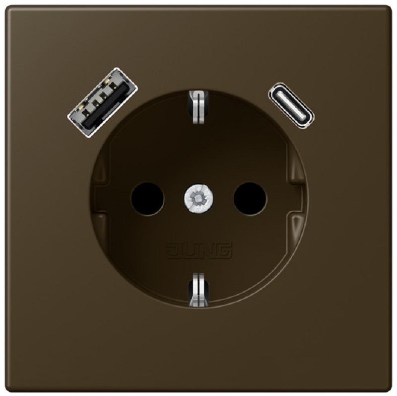 Розетка с заземлением +2хUSB тип A+C без рамки Jung LS990 metal 1-м. античная латунь картинка