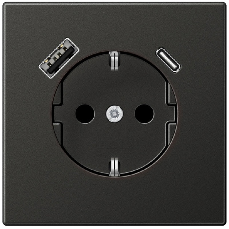 Розетка с заземлением +2хUSB тип A+C без рамки Jung LS990 metal 1-м. антрацит