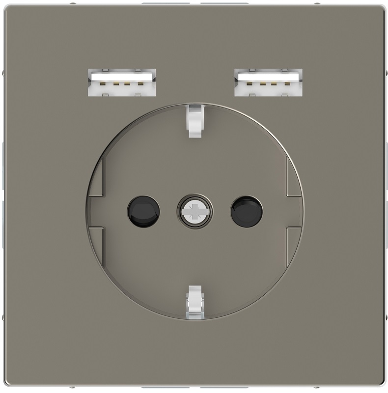 Розетка с заземлением +2xUSB тип A+A без рамки Schneider Electric Merten D-Life 1-м. никель картинка
