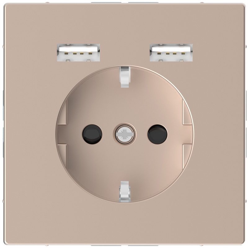 Розетка с заземлением +2xUSB тип A+A без рамки Schneider Electric Merten D-Life 1-м. шампань