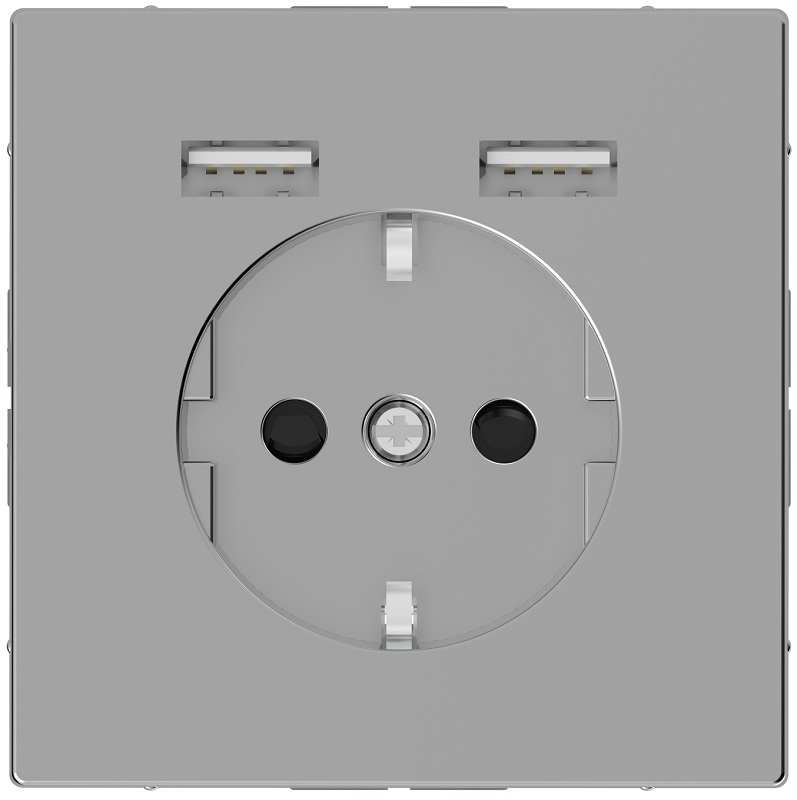 Розетка с заземлением +2xUSB тип A+A без рамки Schneider Electric Merten D-Life 1-м. сталь