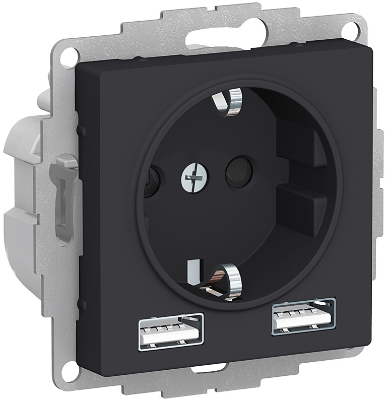 Розетка с заземлением +2xUSB тип A+A без рамки Systeme Electric AtlasDesign 1-м. карбон