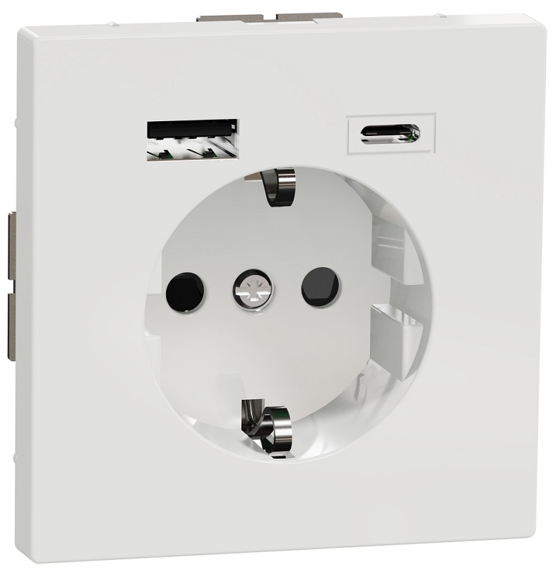 Розетка с заземлением +2xUSB тип A+C без рамки Schneider Electric Merten D-Life 1-м. белый лотос