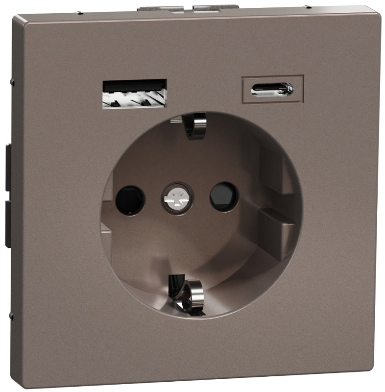 Розетка с заземлением +2xUSB тип A+C без рамки Schneider Electric Merten D-Life 1-м. мокко