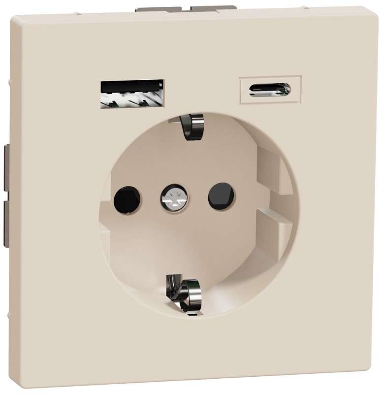 Розетка с заземлением +2xUSB тип A+C без рамки Schneider Electric Merten D-Life 1-м. сахара