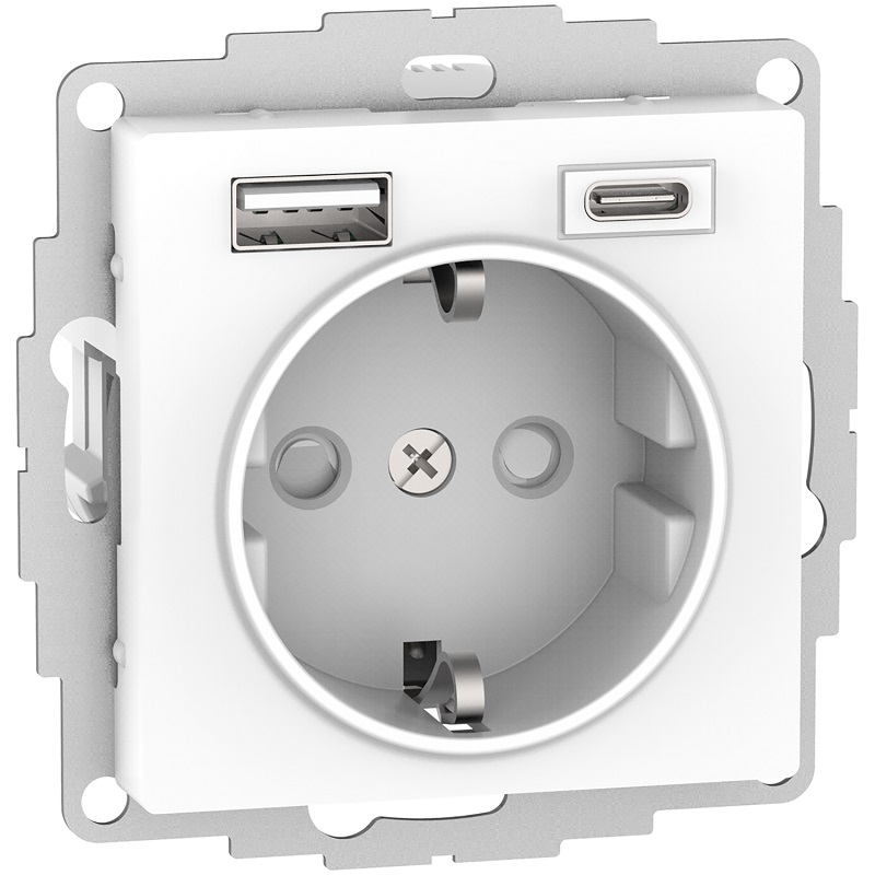 Розетка с заземлением +2xUSB тип A+C без рамки Systeme Electric AtlasDesign 1-м. белый