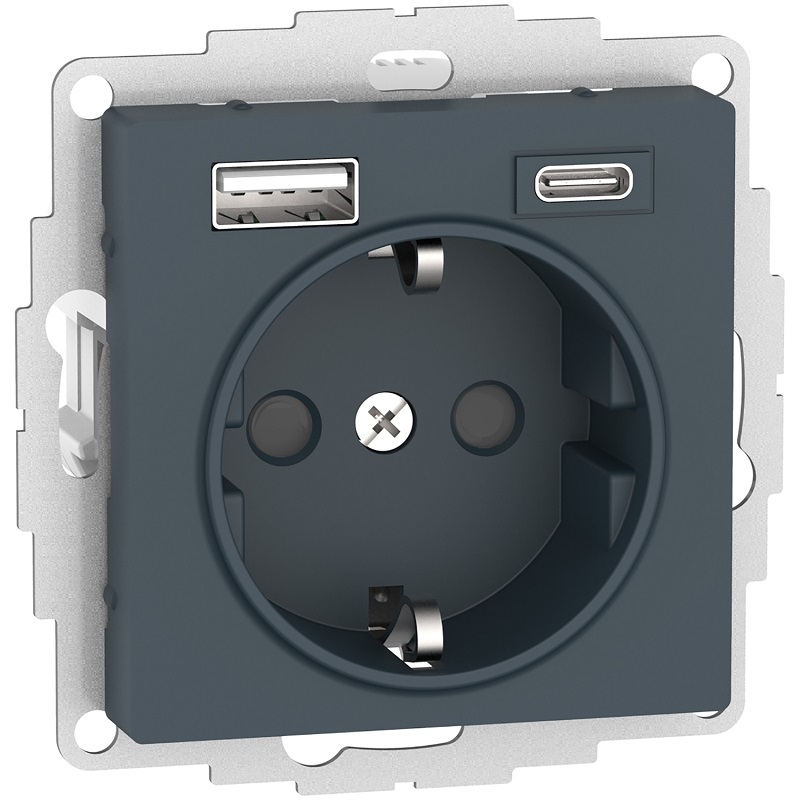 Розетка с заземлением +2xUSB тип A+C без рамки Systeme Electric AtlasDesign 1-м. изумруд