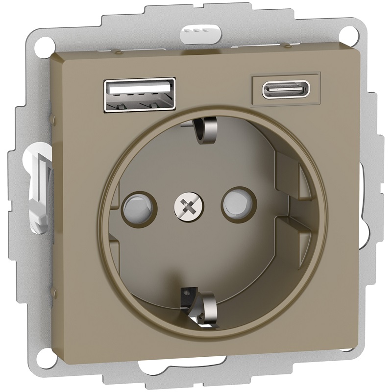 Розетка с заземлением +2xUSB тип A+C без рамки Systeme Electric AtlasDesign 1-м. шампань