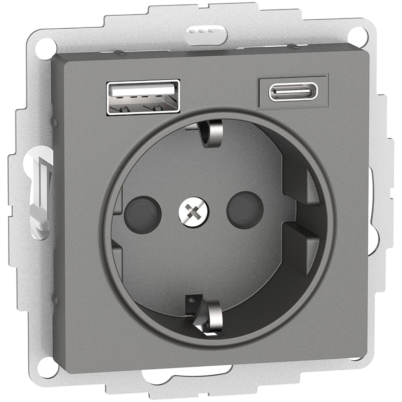Розетка с заземлением +2xUSB тип A+C без рамки Systeme Electric AtlasDesign 1-м. сталь