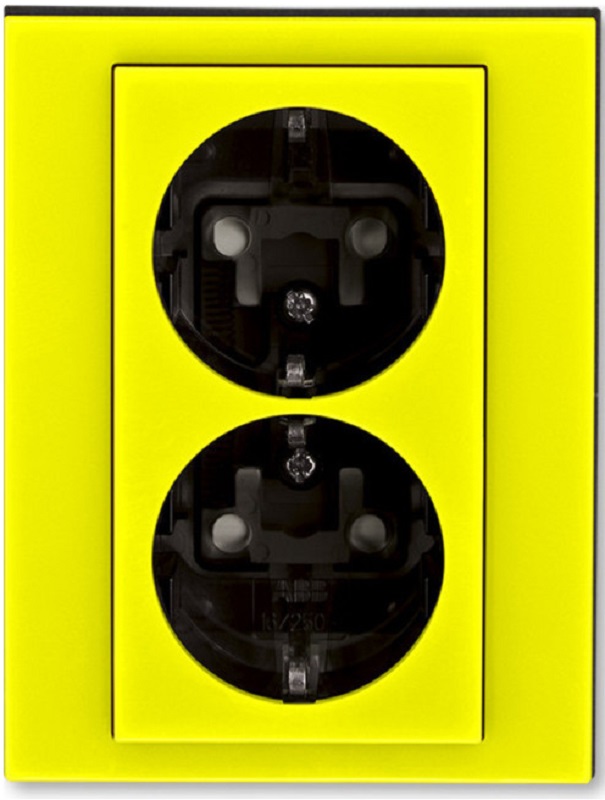 Розетка с заземлением ABB EPJ Levit 1-м. 2 мод. шторки желтый/дымчатый черный