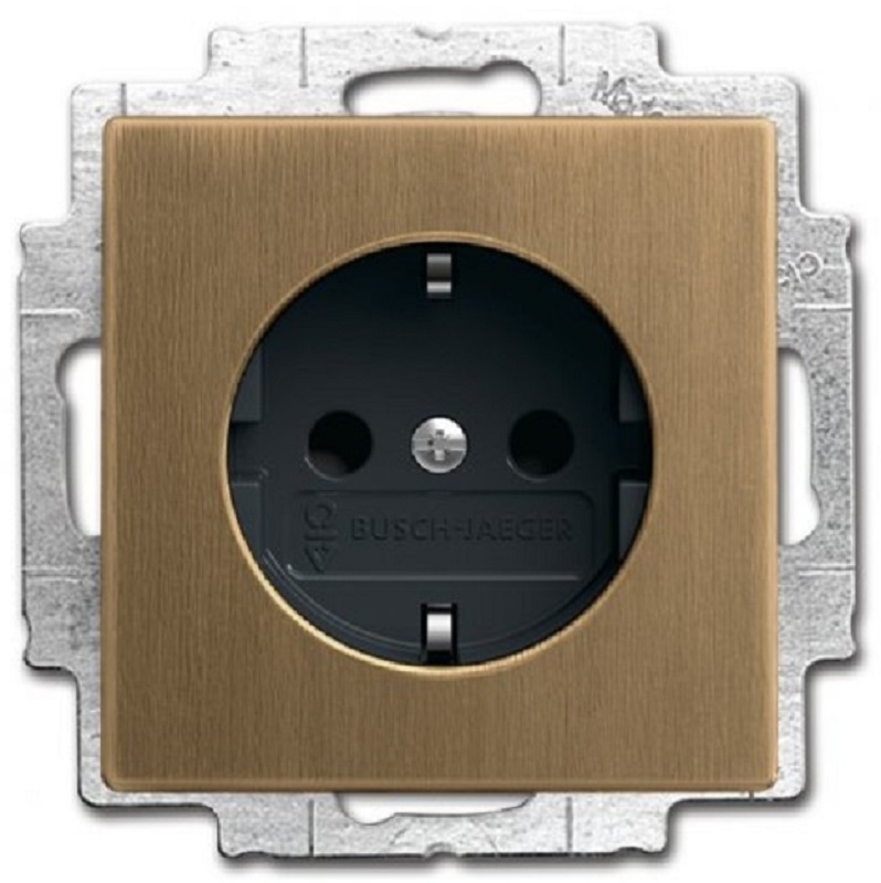 Розетка с заземлением без рамки ABB Династия 1-м. с подсветкой шторки античная латунь картинка фото 2