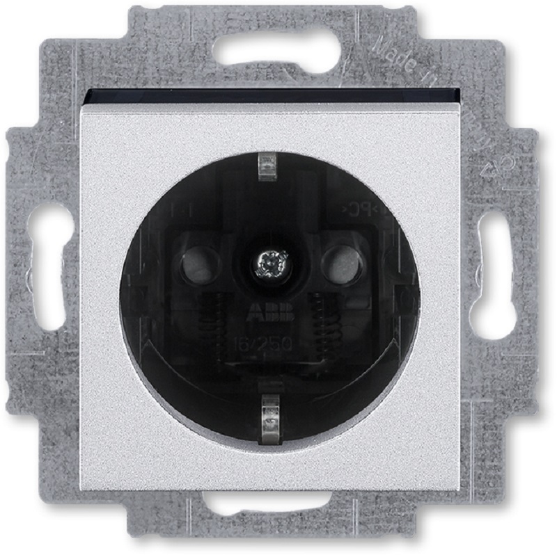 Розетка с заземлением без рамки ABB EPJ Levit 1-м. шторки серебро/дымчатый чёрный
