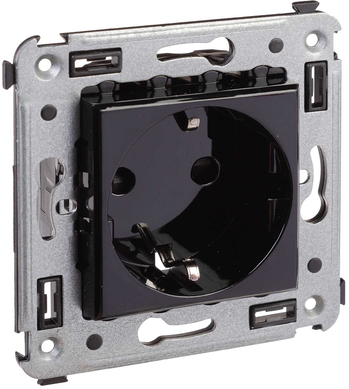 Розетка с заземлением без рамки DKC Avanti 1-м. шторки черный квадрат картинка