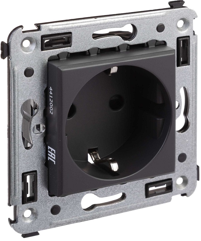 Розетка с заземлением без рамки DKC Avanti 1-м. шторки черный матовый