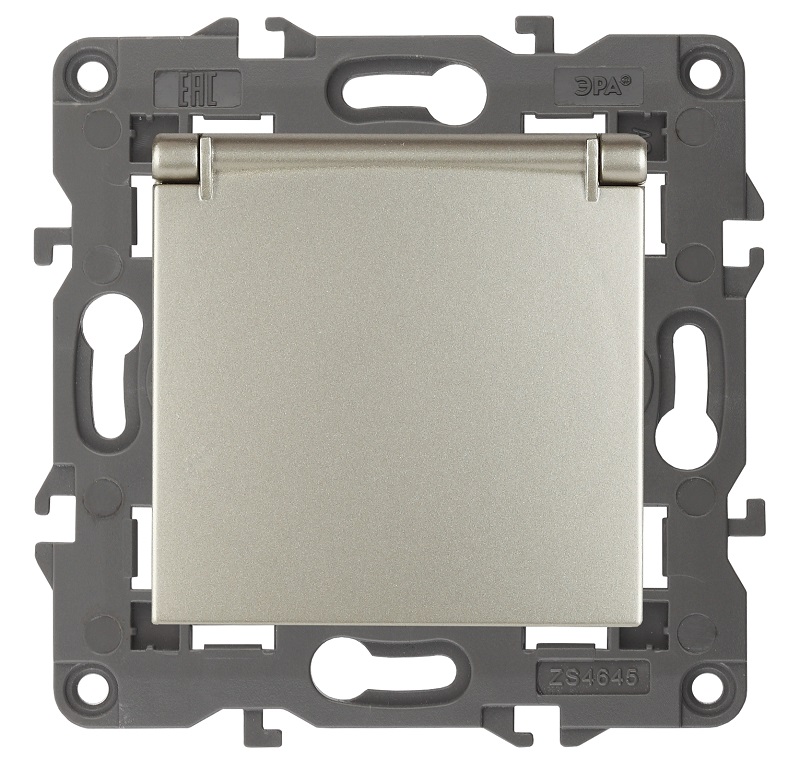 Розетка с заземлением без рамки Эра Elegance 1-м. крышка шторки шампань картинка