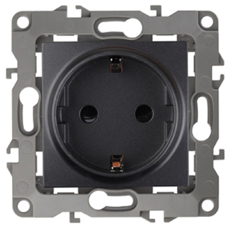 Розетка с заземлением без рамки Эра S12 1-м 16А антрацит картинка